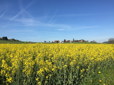 Draussen ist herrliches Wetter und überall wird Gras abgeschnitten.